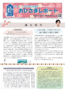 増茂しのぶの「おひさまレポート129号」 送付をご希望の方は目黒・生活者ネットまでご連絡ください。